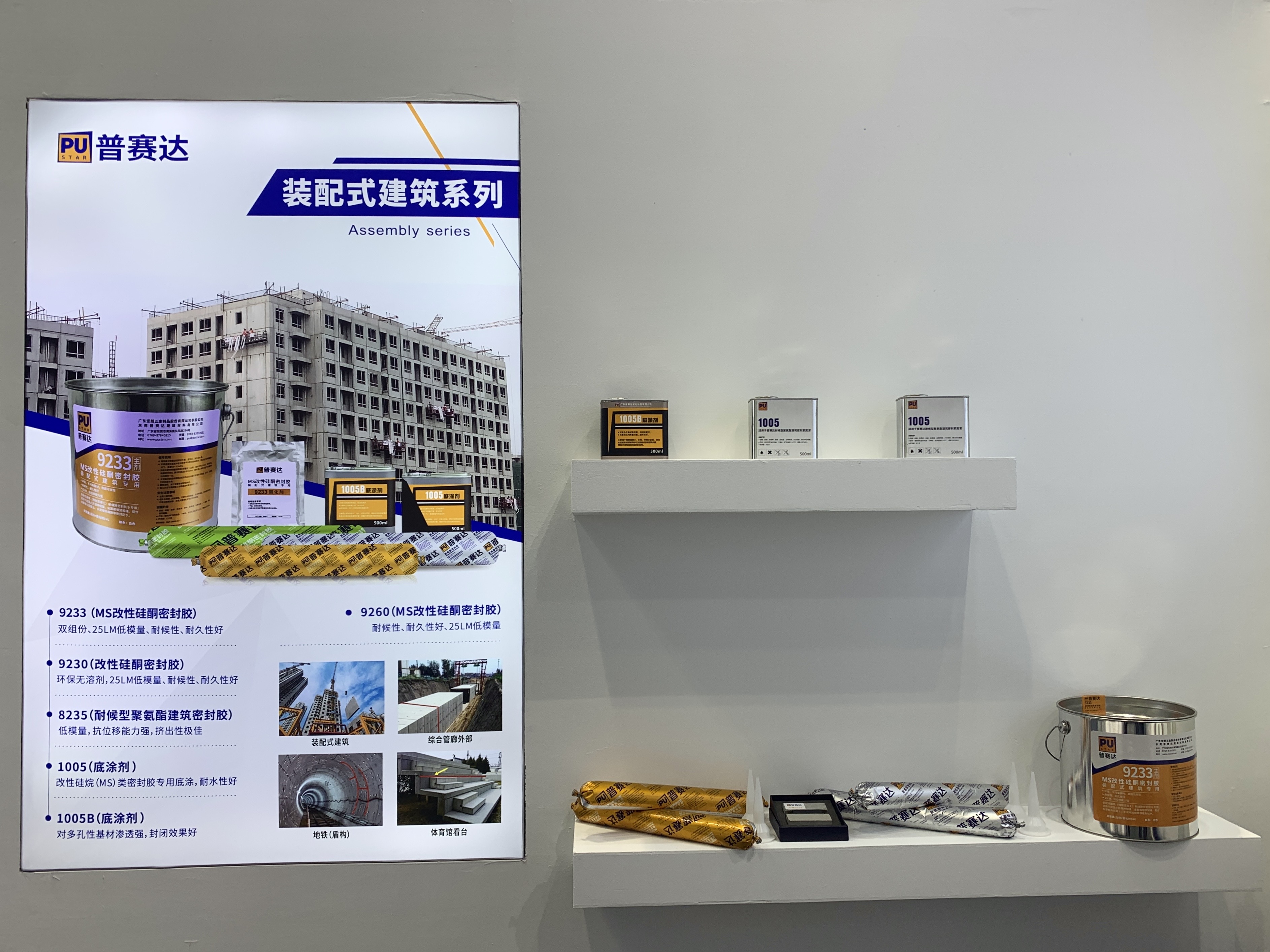 本屆展會(huì),普賽達(dá)攜建筑全系列膠粘劑產(chǎn)品亮相,諸如建筑工程用25LM低模量的改性硅酮密封膠、耐候高性能的聚氨酯密封膠;內(nèi)裝用0級(jí)防霉無(wú)甲醛的硅酮膠;能夠牢固粘接多種基材的MS膠。除了展示經(jīng)典的建筑系列膠粘劑,鋁門(mén)窗專(zhuān)用組角膠的展出也成為了此次展會(huì)的一大亮點(diǎn)。