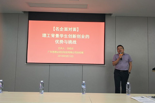 9月13日晚7時(shí),廣東普賽達(dá)密封粘膠有限公司創(chuàng)始人、總經(jīng)理任紹志應(yīng)邀于武漢理工大學(xué)西院圖書館報(bào)告廳為材料學(xué)院高分子專業(yè)學(xué)生舉行題為《理工背景學(xué)生創(chuàng)新創(chuàng)業(yè)的優(yōu)勢與挑戰(zhàn)》講座。本次講座由材料學(xué)院學(xué)工辦田仕老師主持。