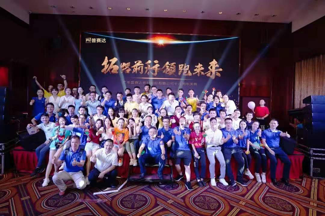 時光荏苒,歲月如梭,轉(zhuǎn)眼間,普賽達(dá)成立16年了。2019年8月12日,廣東普賽達(dá)密封粘膠有限公司的廠區(qū)內(nèi)彩旗飄揚,鑼鼓喧天,全體普賽達(dá)人齊聚一堂,共賀普賽達(dá)16周年慶典。