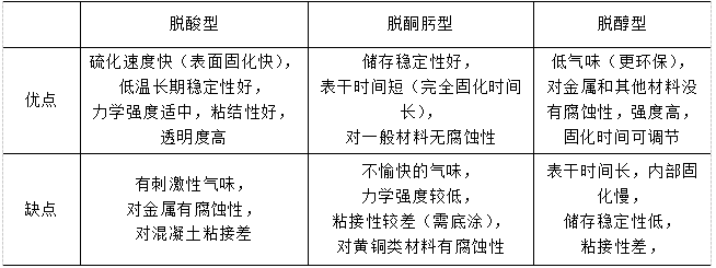 表1. 幾類硅酮膠的優(yōu)缺點對比