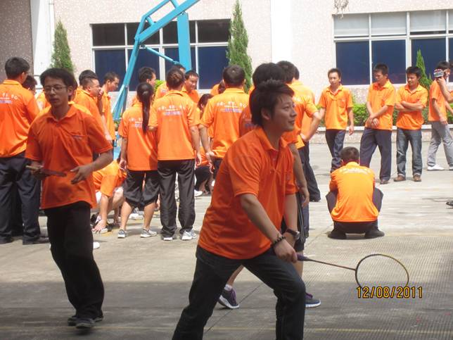 第一部分,拓展活動(dòng)。8月12日上午8:30全體普賽達(dá)人整齊、有序的聚集在行政大樓前,接受公司創(chuàng)始人兼總經(jīng)理任總廠慶的致詞。接下來(lái)普賽達(dá)公司在歡快的鑼鼓聲、震耳欲聾的禮炮聲中拉開(kāi)了8周歲生日慶典的序幕。上午廠區(qū)拓展活動(dòng)有拔河比賽、羽毛球比賽、乒乓球比賽、摸著石頭過(guò)河等拓展活動(dòng)。每個(gè)項(xiàng)目都有嘉賓參與其中,且所有嘉賓都換上了普賽達(dá)密封粘膠橙色廣告衫。在整個(gè)拓展活動(dòng)的過(guò)程中,映入我們眼簾的盡是一片片、一處處、一點(diǎn)點(diǎn)橙燦燦的色彩。此時(shí)此刻我們已分不清楚嘉賓和員工,只知道我們都是普賽達(dá)人,我們盡情的歡笑、我們快樂(lè)的參與,我們爭(zhēng)先恐后向家人展示自己的熱情與活力,讓我們的家人感受到我們永不服輸、敢于拼搏的精神。