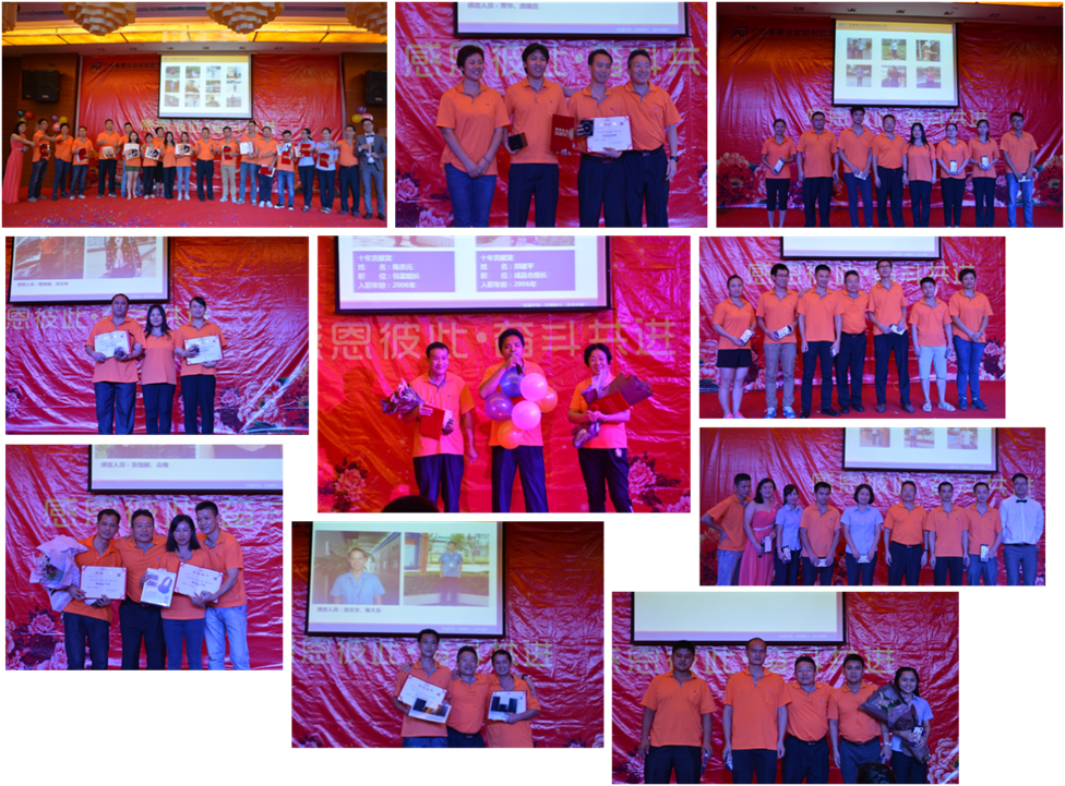 2樓晚宴廳,現(xiàn)場布置、演員化妝、主持彩排、節(jié)目復(fù)習(xí)如火如荼地進(jìn)行。終于,16點30分,帥哥美女齊聚一堂,現(xiàn)場音樂響起,燈光閃爍,普賽達(dá)13周年慶晚會準(zhǔn)時燃起。精彩的視頻短片,記錄了2015的輝煌,任總致辭,表達(dá)了對家人,員工的感謝。歡快的生日歌縈繞耳旁,任總及各部門長一起切蛋糕,開香檳,舉杯慶祝普賽達(dá)13周歲生日。