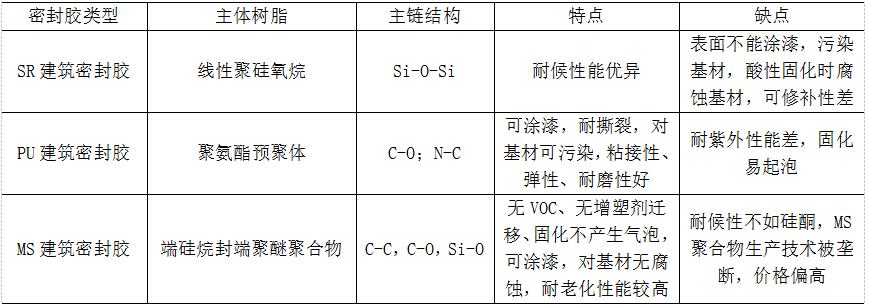 3 單、雙組分MS密封膠性能對(duì)比