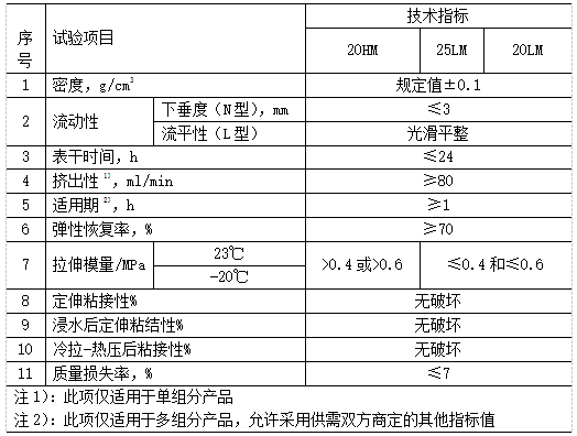 表1  聚氨酯密封膠標(biāo)準(zhǔn)JC/T 482-2003