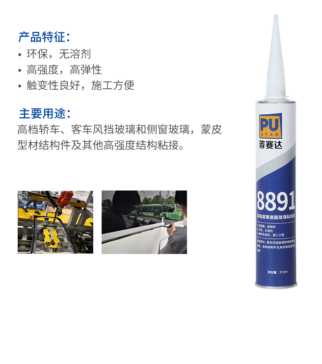 8891高強度聚氨酯玻璃粘接膠是一種單組分濕氣固化聚氨酯膠,具有良好的內(nèi)聚力和密封性能,對基材無腐蝕、無污染,對環(huán)境無污染。