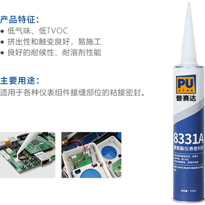 聚氨酯儀表密封膠是一種環(huán)保型、單組分濕氣固化聚氨酯密封膠,具有良好的密封性能和內(nèi)聚力,對(duì)基材無(wú)腐蝕,無(wú)污染,對(duì)環(huán)境無(wú)污染,低氣味、低 TVOC,與金屬、玻璃等多種基材粘接性較好。