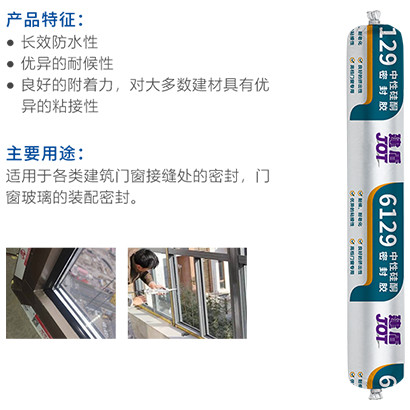 6129為單組分濕氣固化密封膠,采用中性硅酮膠作為原料, 對環(huán)境無污染,與金屬、陶瓷、玻璃、石材等多種基材具有良好的密封粘接性能。