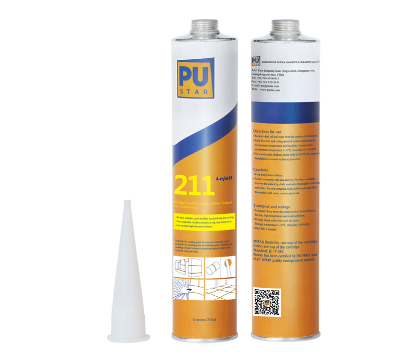 Lejell-211 is one-component, moisture curable polyurethane sealant. Good sealing and flexible performance.