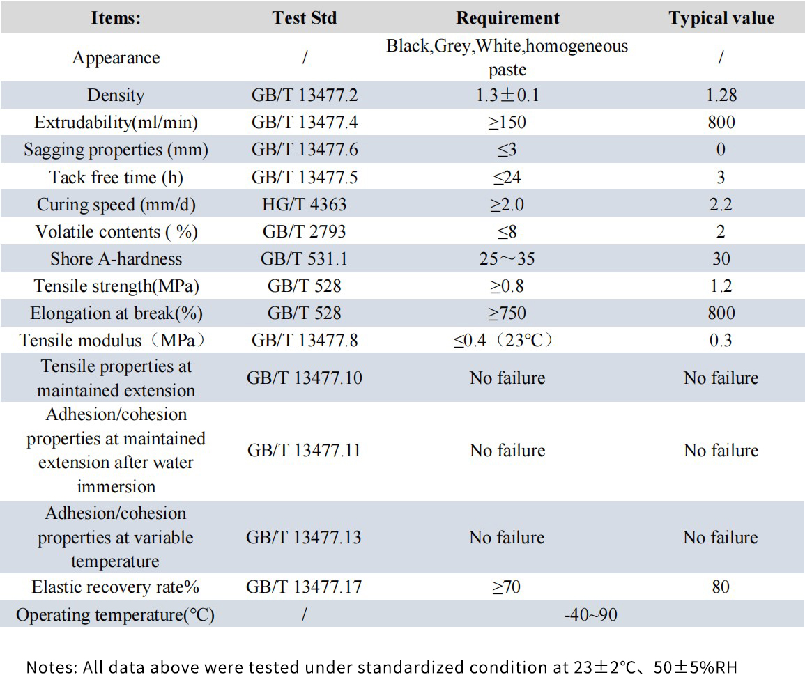 Suitable for sealing joint of concrete external walls. Suitable for sealing joint of artificial panel.