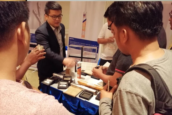 During the meeting, we study and explore the local construction sealants market from each other, and PUSTAR launch the “Lejell” series items including the sealant for the concrete joint sealing, aluminium wall crossover seams sealing and the Ceramic tile seam sealings. The skillful engineer from PUSTAR show how to operation.