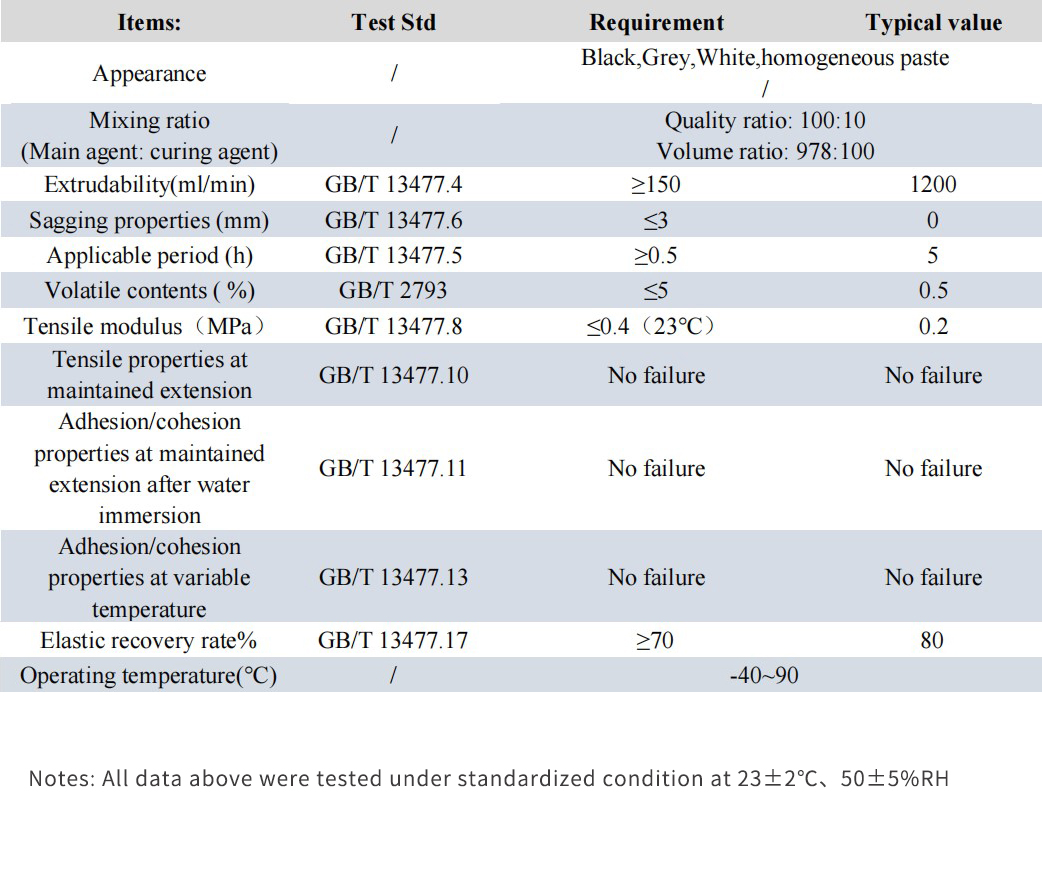 > Suitable for sealing waterproof of concrete beton outside wall, metal curtain wall, aluminum alloy window